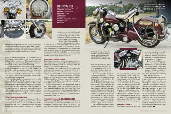 REDISCOVERING RIKUO Today, Rikuo motorcycles are rare and highly collectible. One enthusiast is New Zealander Lindsay Williamson, a founding member of the BEARS motorcycle club and a lifelong aficionado of classic bikes.