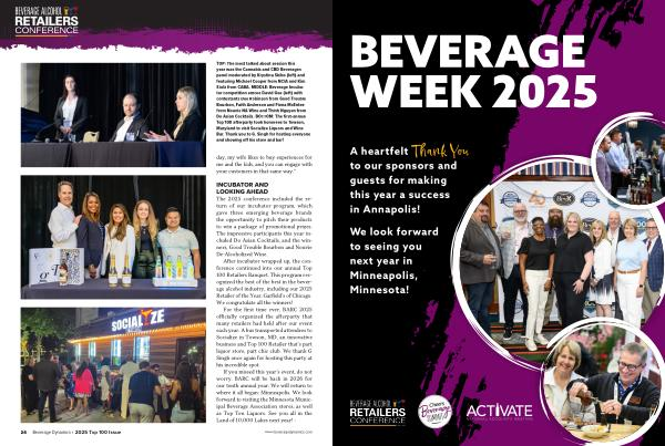 After incubator wrapped up, the conference continued into our annual Top 100 Retailers Banquet. This program recognized the best of the best in the beverage alcohol industry, including our 2025 Retailer of the Year, Garfield’ s of Chicago. We congratulate all the winners!