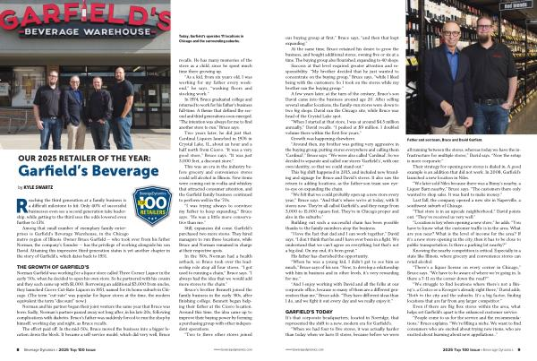 Among that small number of exemplary family enterprises is Garfield’ s Beverage Warehouse, in the Chicago metro region of Illinois. Owner Bruce Garfield— who took over from his father Norman, the company’ s founder— has the privilege of working alongside his son David. Attaining this impressive third-generation status is yet another chapter in the story of Garfield’ s, which dates back to 1951.
