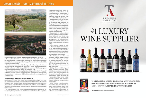 Another part of Treasury Wine Estates’ growth strategy is divesting its lower-margin, commercial wine brands, according to Meininger’ s International. The company announced plans to sell off brands like Wolf Blass and Blossom Hill, which were once staples of its portfolio but are struggling with declining consumer demand. This move allows the supplier to concentrate its resources on more-profitable, high-end wines.