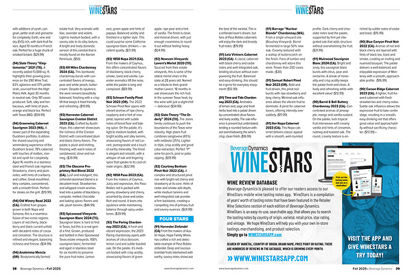 ( 91) Muirwood Sauvignon Blanc 2024( CA). Bright and zesty, this sauvignon blanc bursts with citrus, pear and nectarine. A streak of minerality and crisp acidity keeps the palate fresh and clean. A lively and refreshing white with excellent value!($ 12.99)