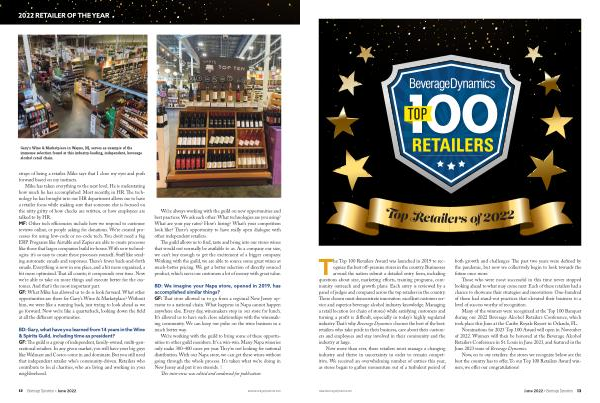 BD : Gary , what have you learned from 14 years in the Wine & Spirits Guild , including time as president ? GF : The guild is a group of independent , family-owned , multi-generational retailers . In any given market , you will have your big guys like Walmart and Costco come in and dominate . But you still need that independent retailer who ’ s community-driven . Retailers who contribute to local charities , who are living and working in your neighborhood .