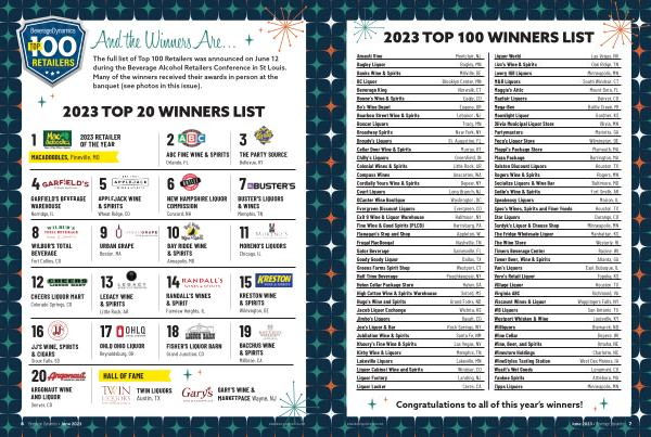 The full list of Top 100 Retailers was announced on June 12 during the Beverage Alcohol Retailers Conference in St Louis . Many of the winners received their awards in person at the banquet ( see photos in this issue ).