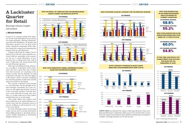 SURVEY DATA was collected from readers of Beverage Dynamics , Cheers and Beverage Wholesaler in September 2023 as part of the quarterly Pulse surveys that track industry trend / sentiment data . Additional industry data and analysis is available — visit epgacceleration . com to find out more .