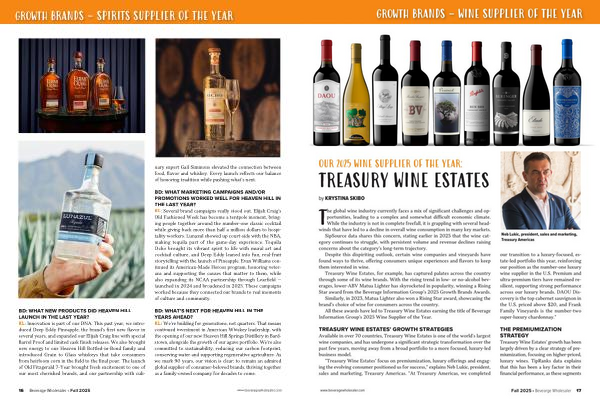 All these awards have led to Treasury Wine Estates earning the title of Beverage Information Group’ s 2025 Wine Supplier of the Year.