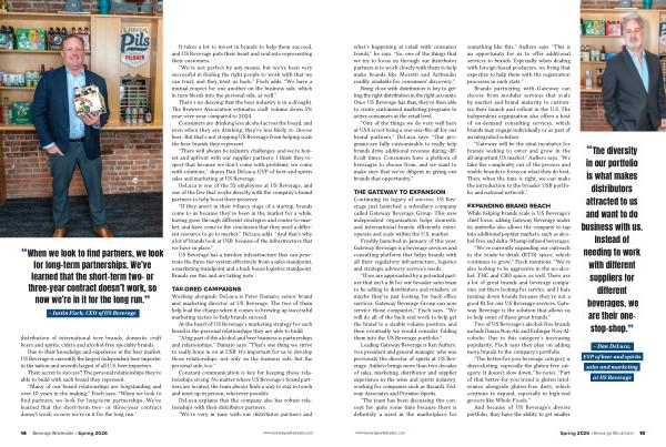 US Beverage has a turnkey infrastructure that can penetrate the three-tier system effectively from a sales standpoint, a marketing standpoint and a back house logistics standpoint. Brands see this and are taking note.