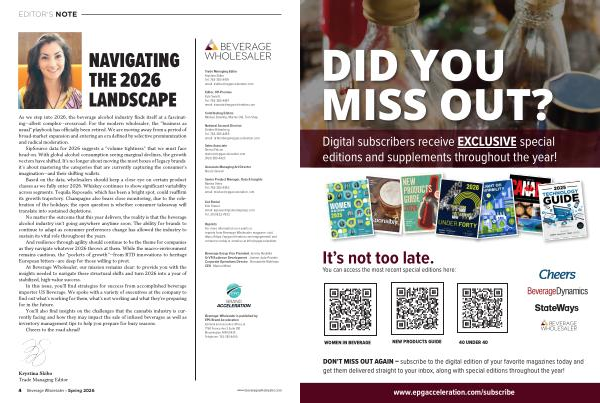 4 Beverage Wholesaler • Spring 2026 www. beveragewholesaler. com