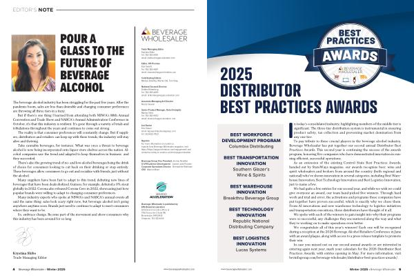 In case you missed out on our second annual awards or are interested in entering again next year, mark your calendars for the 2026 Distributor Best Practices Awards, with entries opening in May. For more information, visit bevinfogroup. com / beverage-wholesaler / distributor-best-practices-awards /.
