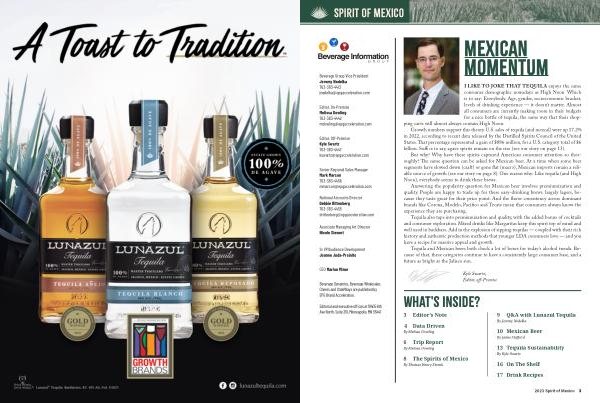 Growth numbers support this theory . U . S . sales of tequila ( and mezcal ) were up 17.2 % in 2022 , according to recent data released by the Distilled Spirits Council of the United States . That percentage represented a gain of $ 886 million , for a U . S . category total of $ 6 billion . Suffice to say , agave spirits remain on the rise ( see our story on page 13 ).