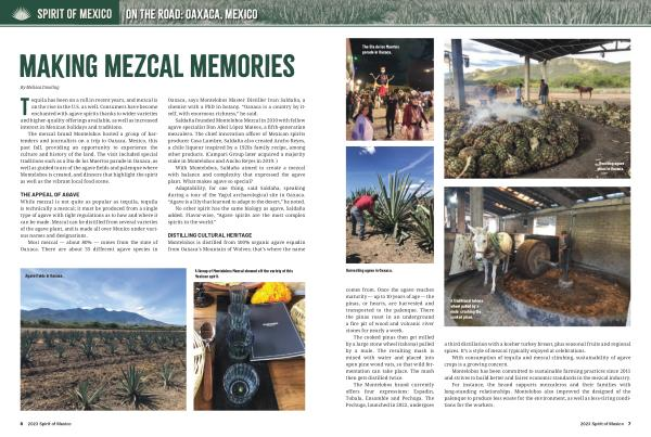 The mezcal brand Montelobos hosted a group of bartenders and journalists on a trip to Oaxaca , Mexico , this past fall , providing an opportunity to experience the culture and history of the land . The visit included special traditions such as a Dia de los Muertos parade in Oaxaca , as well as guided tours of the agave fields and palenque where Montelobos is created , and dinners that highlight the spirit as well as the vibrant local food scene .