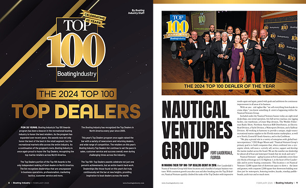 FOR 20 YEARS , Boating Industry ’ s Top 100 Awards program has been a beacon in the recreational boating industry to honor the best retailers . As the program has expanded over recent years , the awards now not only honor the best of the best in the retail segment , but the recreational marine ’ s elite across the entire industry . As a continuation of the program ’ s roots , Boating Industry is once again proud to honor the Top Dealers , recognizing the top marine retailers across North America .