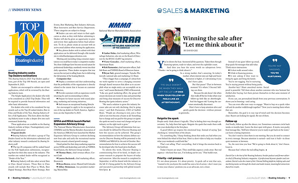 David Gee is the host of the Boating Industry Insider podcast and former editorin-chief of Boating Industry magazine. A professional keynote speaker and consultant, David is also the creator of the 3 Second Selling platform, helping sales and marketing teams cut through the clutter and make instant, meaningful connections that drive results.