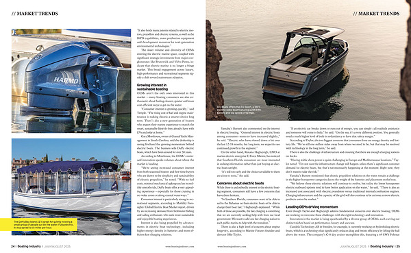 Yamaha’ s Burnett also commented on the interest in electric boating.“ General interest in electric boats among consumers seems to have increased slightly,” he said.“ Electric sales have slowed down a bit over the last 12-18 months, but long term, we expect to see continued growth in the segment.”