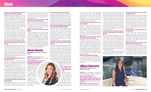 way back . Luckily , I have had the opportunity to partner with a wealth of knowledgeable people who were happy to steer me in the right direction . Everyone I ’ ve worked with welcomed me with open arms . It ’ s been incredible to learn from professionals who are so informed on the marine industry . How do you hope to inspire other women in the marine industry ? I hope to see women continue to use their passion as a catalyst for the work they do in the industry . It ’ s important to me that women receive recognition and representation as leaders . There are so many opportunities for growth and innovation , and I ’ m confident that the next generation of women occupying this space will lead the charge . What advice do you have for women starting their careers in the marine industry ? I encourage any woman who is embarking on a career in the marine industry to get out on the water and experience all the industry you support has to offer . Try spending a morning observing a boater launching their boat or rental . You will quickly see areas of opportunity for attracting new consumers and enhancing their overall boating experience . Take the time to visit a dealership so you can understand the sales cycle . Also , make sure to study the available data and its sources . What is your favorite place to go boating ? I love spending time out on Lake Minnetonka or Lake Riley in Minnesota . I live in the area , so I get to visit the area with my family and friends and experience the boating lifestyle first-hand .