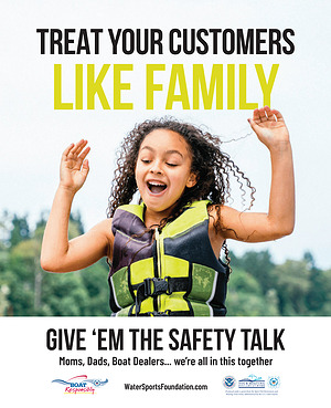 GIVE ‘ EM THE SAFETY TALK Moms , Dads , Boat Dealers ... we ’ re all in this together