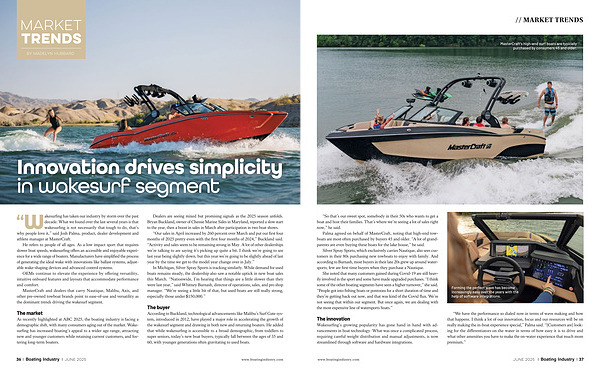 She noted that many customers gained during Covid-19 are still heavily involved in the sport and some have made upgraded purchases.“ I think some of the other boating segments have seen a higher turnover,” she said.“ People got into fishing boats or pontoons for a short duration of time and they’ re getting back out now, and that was kind of the Covid flux. We’ re not seeing that within our segment. But once again, we are dealing with the most expensive line of watersports boats.”