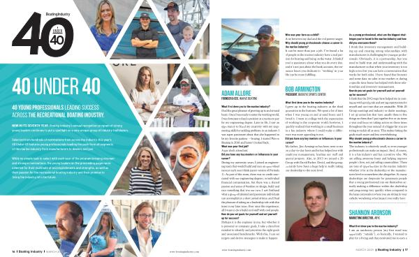 NOW IN ITS SEVENTH YEAR , Boating Industry ’ s annual recognition program of strong young leaders continues to put a spotlight on a very unique group of industry trailblazers .