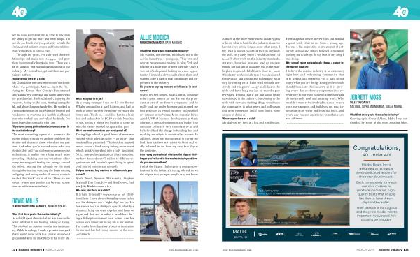 He was a police officer in New York and instilled a great work ethic in me from a young age . He was a big inspiration in my pursuit of collegiate lacrosse and always believed in me while pushing me to always do my best in anything I was doing . Why should young professionals choose a career in the marine industry ? I believe the marine industry is an extremely tight-knit and welcoming community that is so upbeat and energetic – it is hard to not enjoy what you are doing ! Young professionals should look into this industry as it is growing every day so there are opportunities everywhere to put your name on something and do some really cool and amazing work . Who wouldn ’ t want to be involved in a space where your peers support and build you up , your inspiration is the water and beautiful boats , and every day you can experience something new and different .