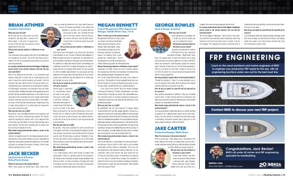 BMD ’ s 40 under 40 winner and FRP engineering specialist for boatbuilding .