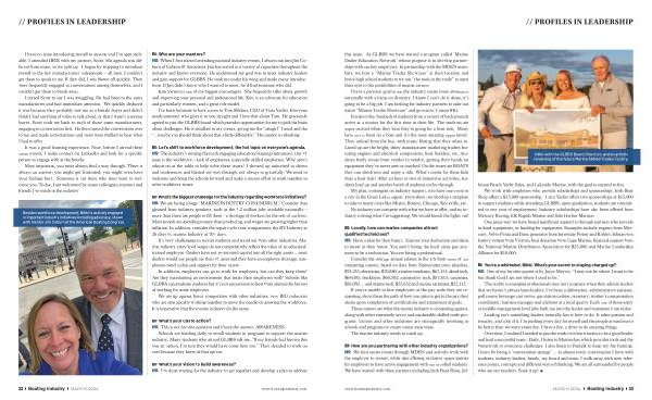 // PROFILES IN LEADERSHIP this issue . At GLBBS we have started a program called ‘ Marine Dealer Education Network ’ whose purpose is to develop partnerships with our key employers . In partnership with the MDEN members , we host a “ Marine Trades Showcase ” at their location and invite high school students to try out “ the tools in the trade ” to open their eyes to the possibilities of marine careers .