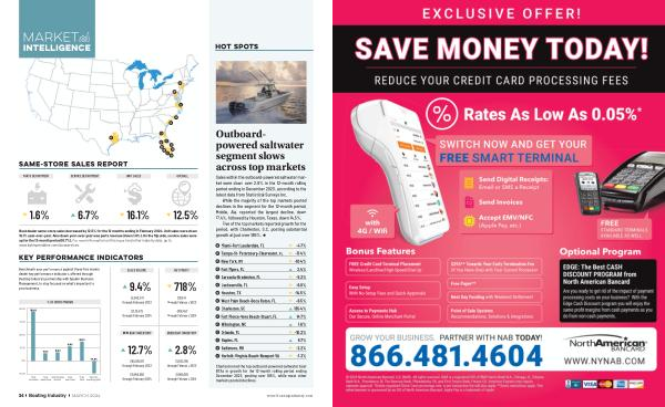 Boat dealer same-store sales decreased by 12.5 % for the 12 months ending in February 2024 . Unit sales were down 16.1 % year-over-year . Also down year-over-year was parts revenue ( down 1.6 %). On the flip side , service sales were up for the 12-month period ( 6.7 %). For more information on this report and other industry data , go to www . lightspeeddms . com / dataservices .
