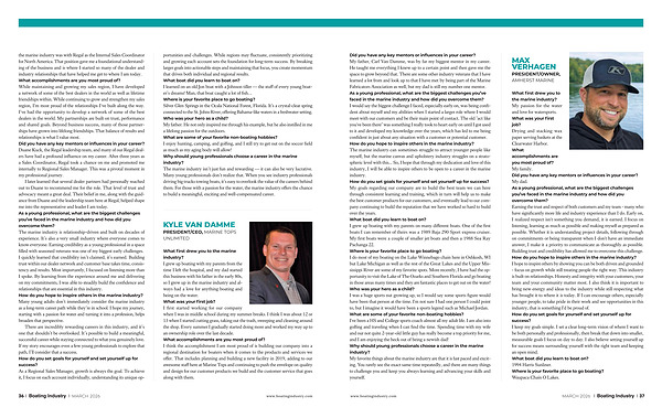 I later learned that several dealer partners had personally reached out to Duane to recommend me for the role. That level of trust and advocacy meant a great deal. Their belief in me, along with the guidance from Duane and the leadership team here at Regal, helped shape me into the representative and leader I am today. As a young professional, what are the biggest challenges you’ ve faced in the marine industry and how did you overcome them? The marine industry is relationship-driven and built on decades of experience. It’ s also a very small industry where everyone comes to know everyone. Earning credibility as a young professional in a space filled with seasoned veterans was one of my biggest early challenges. I quickly learned that credibility isn’ t claimed; it’ s earned. Building trust within our dealer network and customer base takes time, consistency and results. Most importantly, I focused on listening more than I spoke. By learning from the experience around me and delivering on my commitments, I was able to steadily build the confidence and relationships that are essential in this industry. How do you hope to inspire others in the marine industry? Many young adults don’ t immediately consider the marine industry as a long-term career path while they’ re in school. I hope my journey, starting with a passion for water and turning it into a profession, helps broaden that perspective.