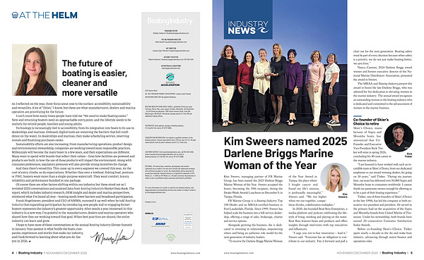 I hope to have more of these conversations at the annual Boating Industry Elevate Summit in January. Your passion is what builds the boats, companies, experiences and stories that make our industry, and I look forward to learning about what you do. See you in 2026.