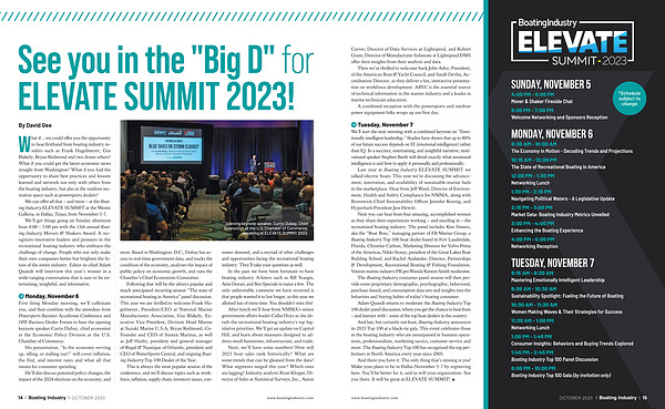 We can offer all that – and more – at the Boating Industry ELEVATE SUMMIT at the Westin Galleria , in Dallas , Texas , from November 5-7 .