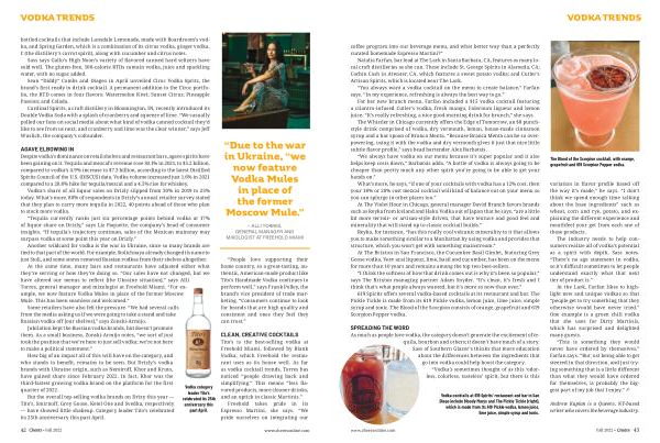 At the same time , many bars and restaurants have adjusted either what they ’ re serving or how they ’ re doing so . “ Our sales have not changed , but we have altered our menus to reflect [ the Ukraine situation ],” says Alli Torres , general manager and mixologist at Freehold Miami . “ For example , we now feature Vodka Mules in place of the former Moscow Mule . This has been seamless and welcomed .”