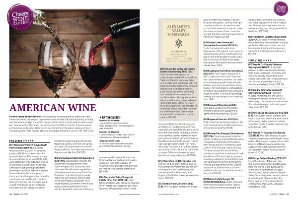 ( 91 ) Sundry Vineyards Cabernet Sauvignon 2020 ( CA ). Fragrant toasted marshmallow and vanilla envelop the senses and balance out the cherry cola , cassis and plum notes . Smooth and elegant , with a long and silky finish . ($ 19.99 )