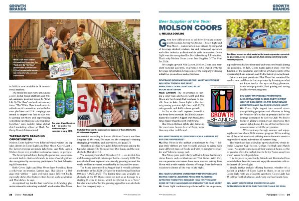 on-premise , according to Larsen . ( Molson Coors is our Beer Supplier of the year ; for more on the company ’ s winning strategies , promotions and activations , see page 17 .)