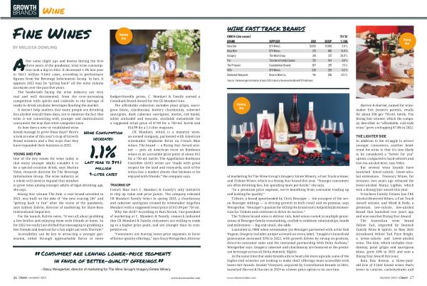 TRADING UP French Blue isn ’ t C . Mondavi & Family ’ s only initiative to step up value and price points . The company released CK Mondavi Family Select in spring 2023 , a chardonnay and cabernet sauvignon created by winemaker Angelina Mondavi with a suggested retail price of $ 15.99 per 750 ml .