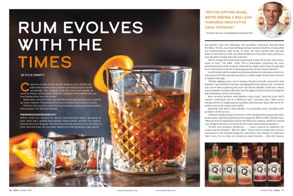 “ We ’ re seeing the trend of premiumization take off in bars and restaurants as well ,” she adds , “ with 72 % of bartenders reporting the most premiumization within tequila , followed by single malts , mezcal and aged rum , mostly driven by the surging popularity of rum-based cocktails .”
