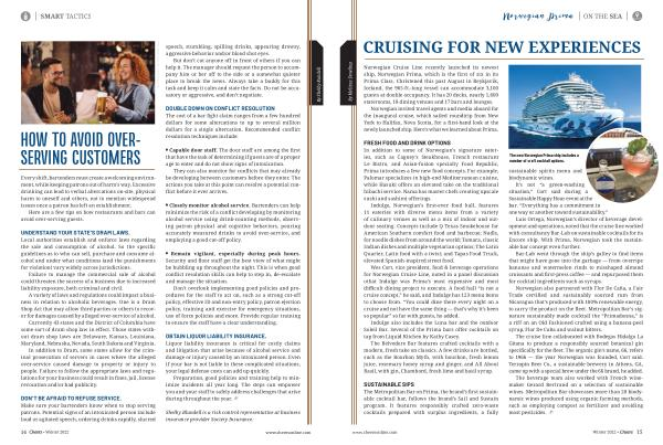 SUSTAINABLE SIPS The Metropolitan Bar on Prima , the brand ’ s first sustainable cocktail bar , follows the brand ’ s Sail and Sustain program . It features responsibly crafted zero-waste cocktails prepared with surplus ingredients , a fully