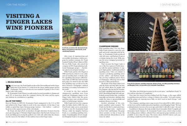 Another advantage of the company’ s sparklers: pinot meunier.“ Dr. Frank was the first to plant pinot meunier in the Finger Lakes— maybe even in New York,” said Bauman. The grape shows promise in that it keeps the acidity and fresh vibrant flavors in the wines, he added.