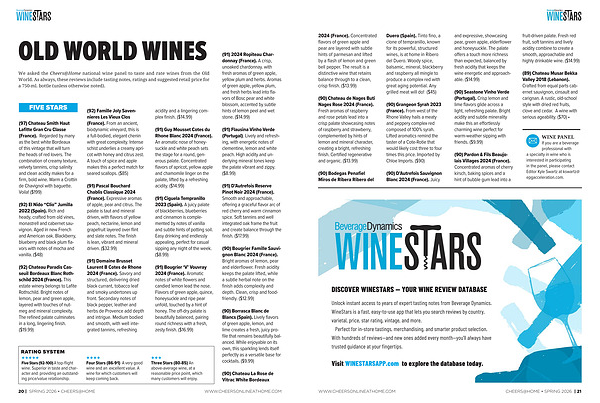 2024( France). Concentrated flavors of green apple and pear are layered with subtle hints of parmesan and lifted by a flash of lemon and green bell pepper. The result is a distinctive wine that retains balance through to a clean, crisp finish.($ 13.99)