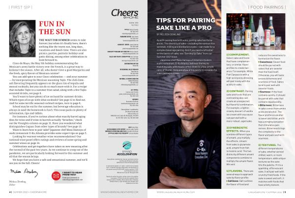 Want to learn how to pair sake ? Japanese chef Masa Hamaya of sushi restaurant O-Ku Atlanta provides some expert tips on page 5 . Looking for warmer-weather wine recommendations ? Our national wine panel offers ratings and reviews of some spring and summer wines on page 14 .