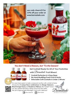It ’ s never been easier to make a restaurant worthy craft cocktail at home . Choose from 9 unique flavor combinations like Mango-Habanero , Blood Orange-Guava and Raspberry-Hibiscus . Barmalade ® mixers are ‘ jam ’ packed with flavor , always more fruit than water . We call it Approachable Mixology ®… You ’ ll call it delicious !