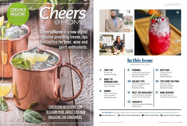 ON THE COVER : Warm Hearth , Warm Hands ; courtesy of Heather Wibbels of Bourbon Women and CocktailContessa . com Cheersonlineathome . com Facebook . com / CheersMagazineOnline Pinterest . com / CheersOnline Instagram . com / Cheers _ Magazine