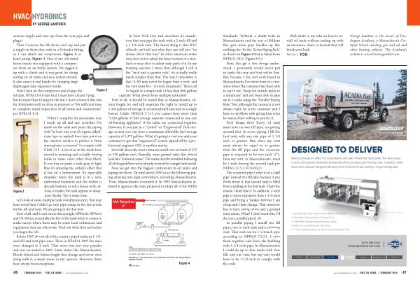 Now we get into the biggest controversy in oil tanks and piping out there . Up until about 1950 or so the following piping drawing was legal everywhere , including Massachusetts . Then , Massachusetts rescinded it . In 1995 Massachusetts allowed it again as the state prepared to adopt all of the NFPA