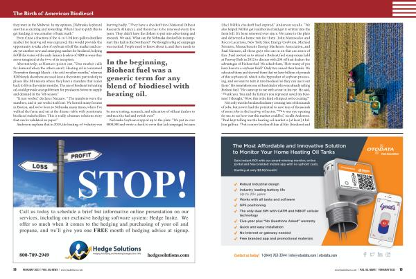 Not only was the biodiesel industry creating tens of thousands of jobs , but now it had the potential to save tens of thousands of more jobs in the heating-oil sector . “ This was eye-opening for me , to see how vast this market could be ,” recalls Anderson . “ Paul kept telling me the heating-oil market is [ at least ] 4 billion gallons . That is more biodiesel than all the [ biodiesel and www . fueloilnews . com | FUEL OIL NEWS | FEBRUARY 2023 19