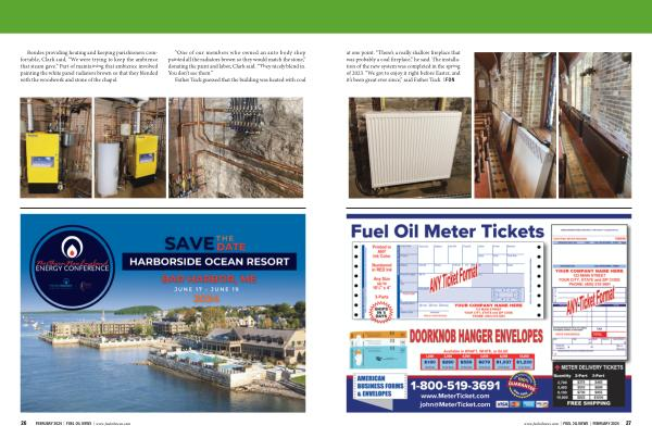 at one point . “ There ’ s a really shallow fireplace that was probably a coal fireplace ,” he said . The installation of the new system was completed in the spring of 2023 . “ We got to enjoy it right before Easter , and it ’ s been great ever since ,” said Father Tuck . l FON www . fueloilnews . com | FUEL OIL NEWS | FEBRUARY 2024 27