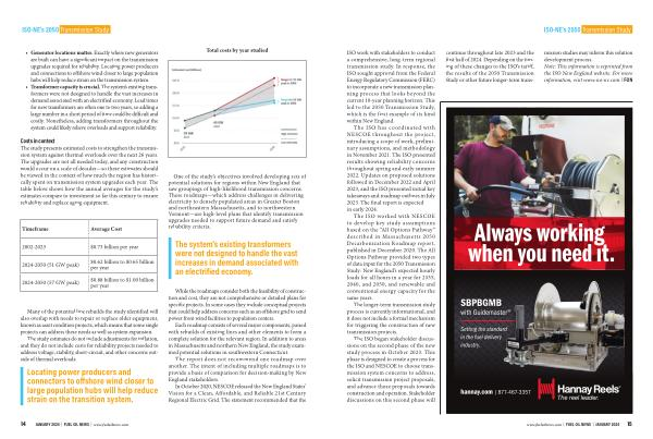 continue throughout late 2023 and the first half of 2024 . Depending on the timing of these changes to the ISO ’ s tariff , the results of the 2050 Transmission Study or other future longer-term transmission studies may inform this solution development process . Note : This information is reprinted from the ISO New England website . For more information , visit www . iso-ne . com . l FON