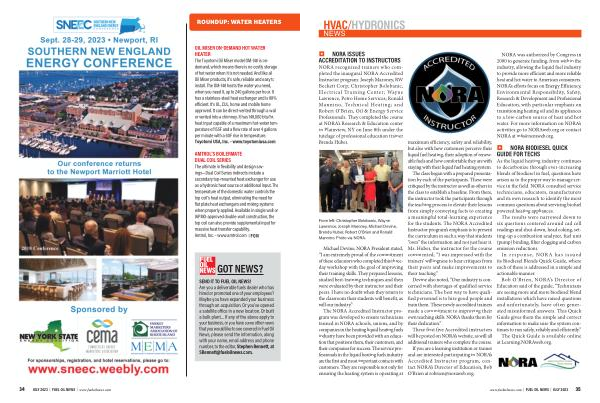 NORA recognized trainers who completed the inaugural NORA Accredited Instructor program : Joseph Maroney , RW Beckett Corp ; Christopher Bolobanic , Electrical Training Center ; Wayne Lawrence , Petro Home Services ; Ronald Mannino , Technical Heating ; and Robert O ’ Brien , Oil & Energy Service Professionals . They completed the course at NORA ’ s Research & Education center in Plainview , NY on June 8th under the tutelage of professional education trainer Brenda Huber .