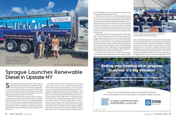 Sprague Operating Resources and New York League of Conservation Voters celebrated the availability of renewable diesel at the Sprague Fuel Terminal in Rensselaer , N . Y . The terminal will serve trucking companies and wholesalers in the Upstate Region . Earlier this year , Sprague opened New York City ’ s first retail fuel station dispensing renewable diesel supplied from Sprague ’ s terminal in The Bronx .