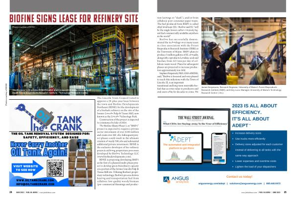 James Hargreaves , Research Engineer , University of Maine ’ s Forest Bioproducts Research Institute ( FBRI ), and Amy Luce , Manager , University of Maine ’ s Technology Research Center ( TRC ). www . fueloilnews . com | FUEL OIL NEWS | JUNE 2023 25