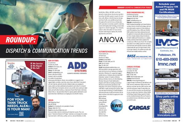 6 Laurel Drive Flanders NJ , 07836 Contact : John Coyle , vice president of sales Phone : 973-584-4026 Email : coylej @ addsys . com Raven is the heart of ADD Systems ’ end-to-end delivery solution for petroleum and propane distributors . Raven , now available on a rugged or nonrugged tablet , provides a real-time view of your entire fleet . Forecasted , will-call , Internet , and tank-monitor-initiated orders are assigned to routes , which are then optimized and pushed to each driver ’ s on-board device . With Raven Companion , drivers can use QR code scanning to label tanks and verify them before pumping fuel . Raven Fleet Fueler minimizes drivers ’ time on-site and allows them to capture gallons delivered to each asset . More than 7,000 Ravens are deployed across North America .