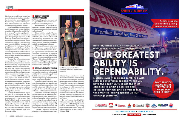 Tubman was also an active and highly respected member of NEFI for many years. His contributions to the organization – and to the heating fuel industry as a whole – were both profound and enduring. A tireless advocate for Main Street energy companies, his leadership, integrity, and passion guided countless professionals and inspired those who worked alongside him.