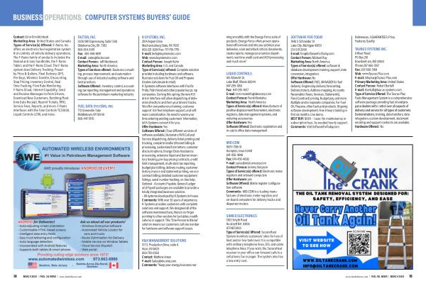 K-SYSTEMS , INC . 2104 Aspen Drive Mechanicsburg State , PA 17055 800-221-0204 Fax : 717-795-7715 E-mail : tech @ ksystemsinc . com Web : www . ksystemsinc . com Contact Person : Joseph Kuhn Marketing Area : U . S . and Canada Type of Service ( s ) offered : Complete solution provider including hardware and software . Business solutions for Fuel Oil and Propane Dealers ( wholesale & retail ). K-Systems software interfaces with Pacific Pride , Petro Vend and other popular key pump companies . Coming this spring , the new KSI driver interface will allow dispatching of deliveries directly to and from your drivers ’ trucks . We offer comprehensive training , customer support , toll-free telephone support , and software customization . No need to waste your time entering existing customers ’ information , let K-Systems convert it for you . Offer Hardware : Yes Software Offered : ( Four different versions of software available .) Automatic / Will Call and Service dispatching , delivery ticket printing and tracking , complete landlord / tenant billing & processing , customized form letters , customer discount options , Energy / Crisis Assistance processing , extensive liquid and burner inventory tracking , pre-buy pricing contracts , credit limit management , multi-state tax reporting , budget plan billing , delivery routing , customer history , invoice and statement printing , service contract billing , detailed customer equipment listings , serial number tracking , on-line help . Optional - Accounts Payable , General Ledger and Payroll packages are available to provide a totally integrated business solution . – All systems developed by K-Systems in-house . Comments : With over 30 years of experience , K-Systems provides customers with complete solutions and support . We designed all of the software mentioned here , there is no finger pointing to other vendors for tax tables , modifications or support . This “ One-Person to Blame ” solution means our customers call one number for hardware and software support issues .