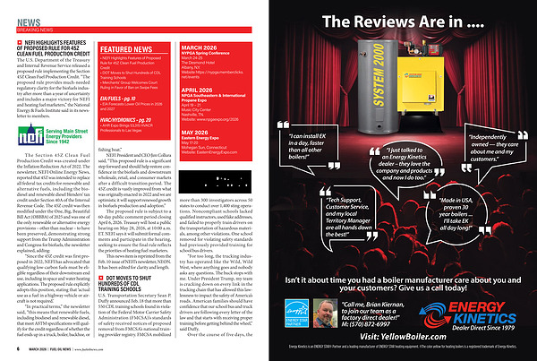 The proposed rule is subject to a 60-day public comment period closing April 6, 2026. Treasury will host a public hearing on May 28, 2026, at 10:00 a.m. ET. NEFI says it will submit formal comments and participate in the hearing, seeking to ensure the final rule reflects the priorities of heating fuel marketers.